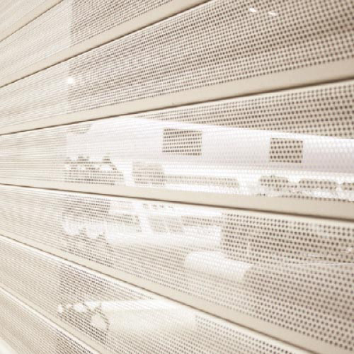 Le rideau métallique Murax 110 Microperforé, en acier galvanisé, offre une rigidité maximum, avec un ajourage qui permet la valorisation de votre vitrine et une circu-